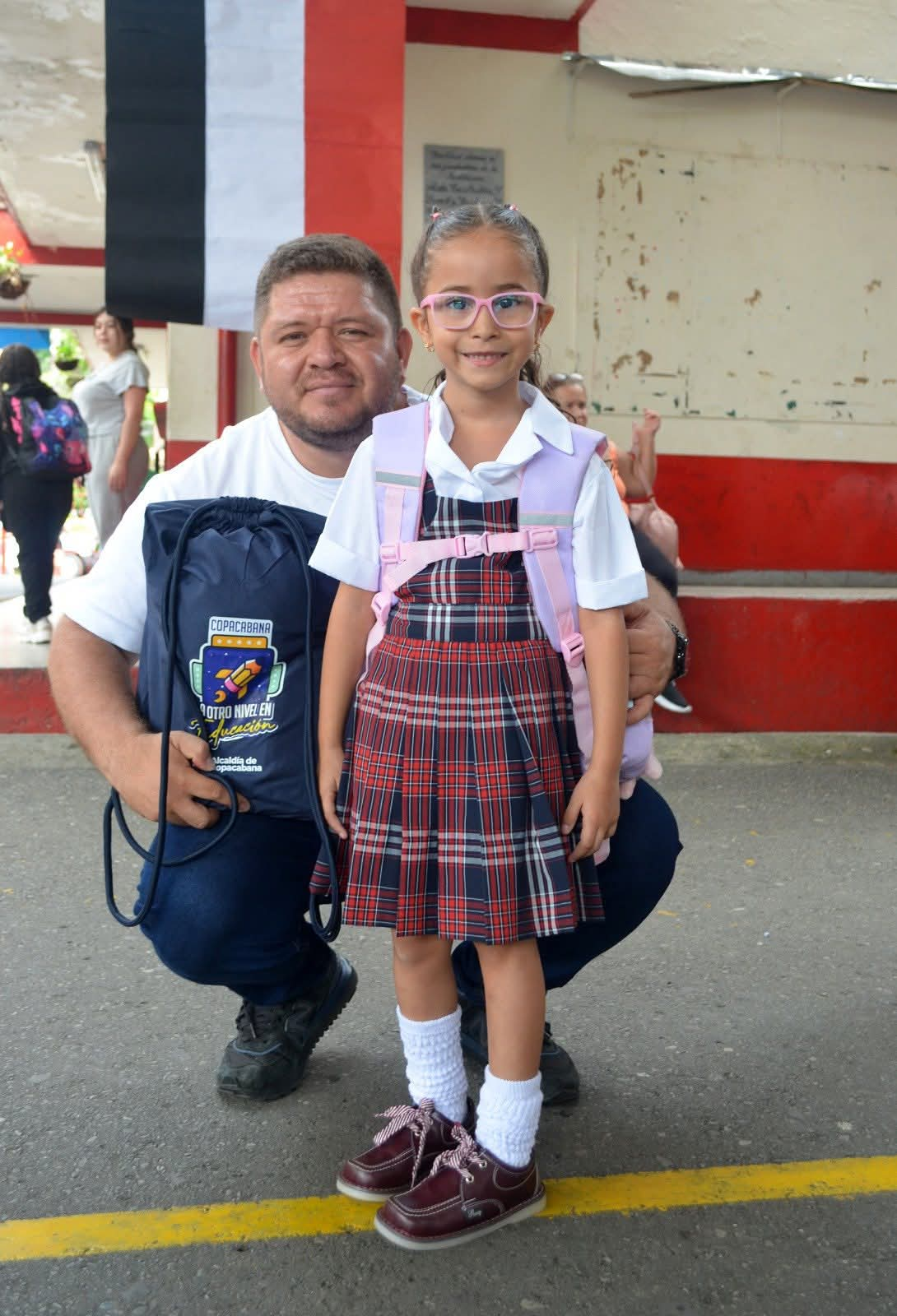 Acompañamos la entrega de kits escolares y uniformes de educación física a estudiantes de primaria de colegios públicos en Copacabana.